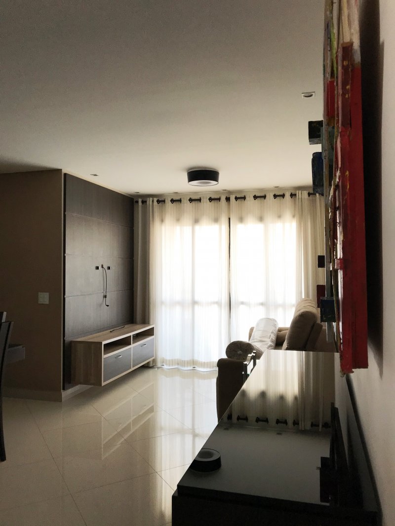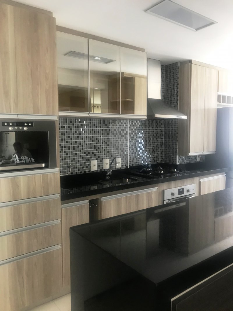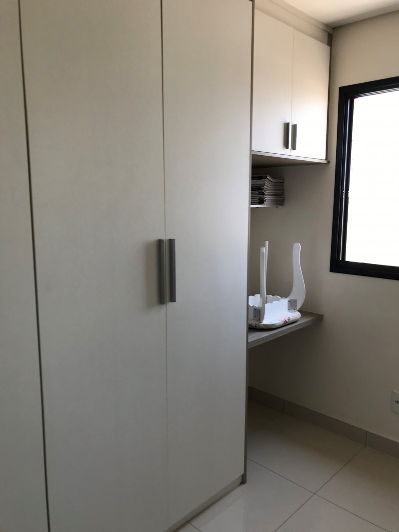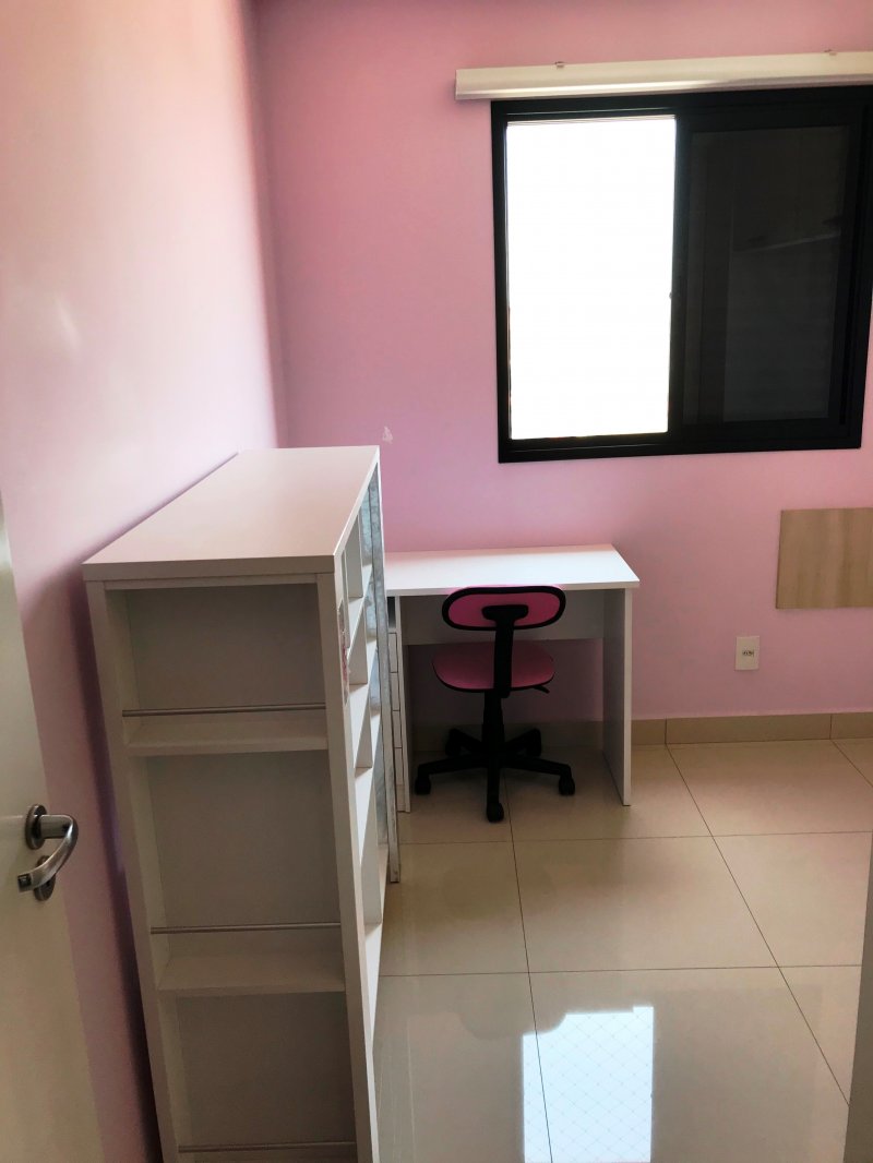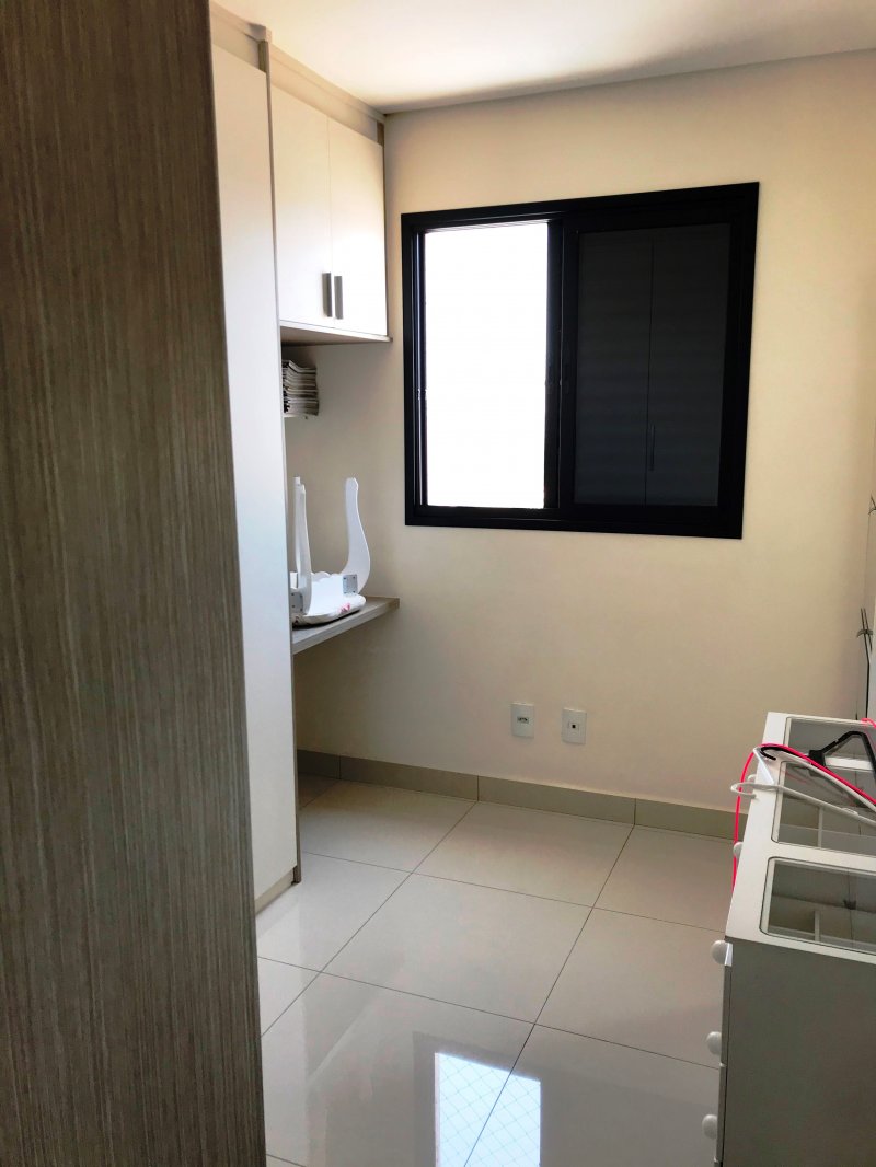 Apartamento está situado no Condomínio Espaço e Vida com 89 m², andar alto, sol da tarde, piso porcelanato, armários planejados em todos os ambientes (3 quartos, banheiros, cozinha, lavanderia e sala de TV), móveis (mesa, sofá, etc.) e eletrodomésticos inclusos no preço.