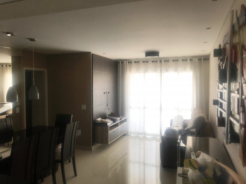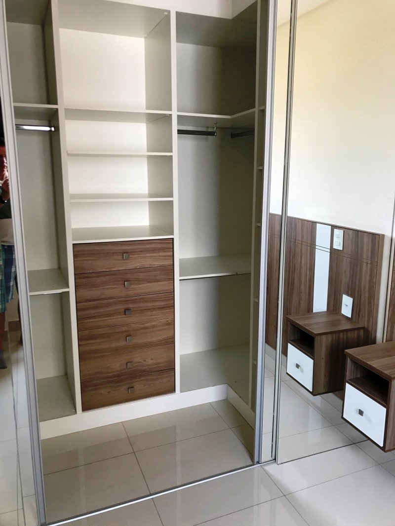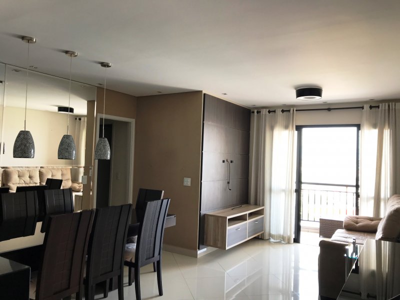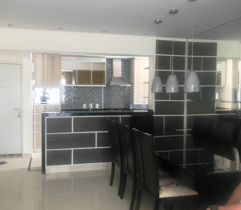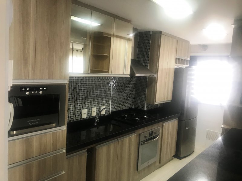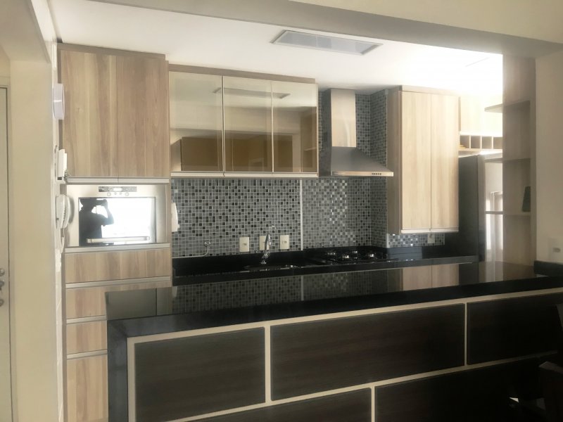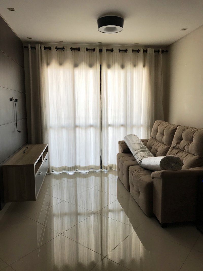 Apartamento está situado no Condomínio Espaço e Vida com 89 m², andar alto, sol da tarde, piso porcelanato, armários planejados em todos os ambientes (3 quartos, banheiros, cozinha, lavanderia e sala de TV), móveis (mesa, sofá, etc.) e eletrodomésticos inclusos no preço.