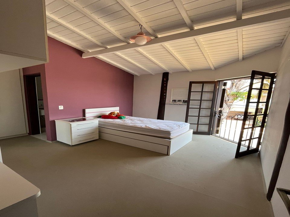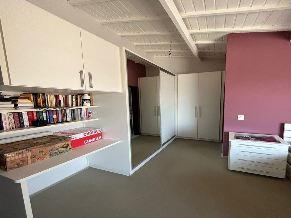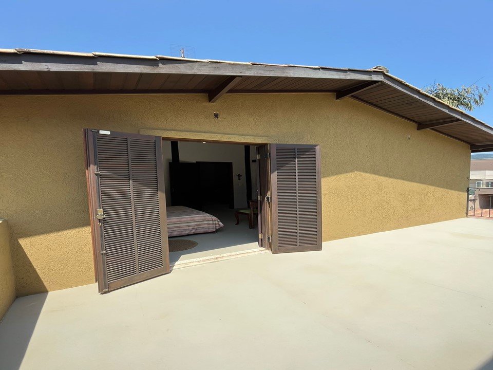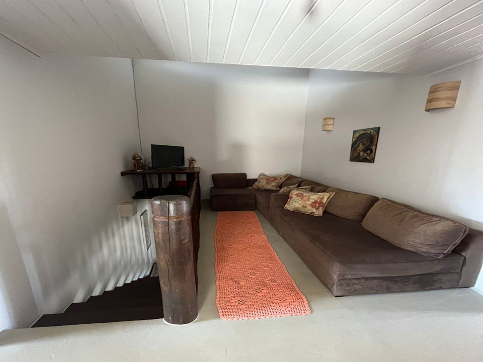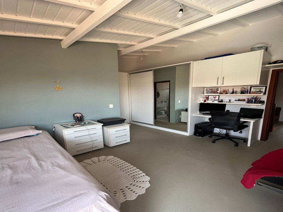 No pavimento superior, três suítes, sendo uma master com closet e varanda. Há também uma sala de TV ou escritório.