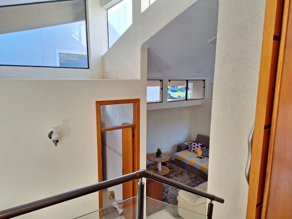 Com pé direito duplo e amplas janelas, a casa é banhada por luz natural, criando um ambiente convidativo e arejado.