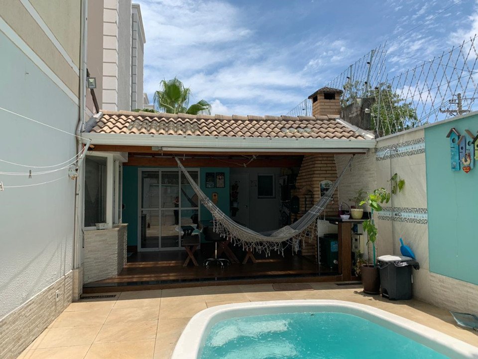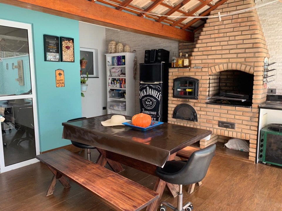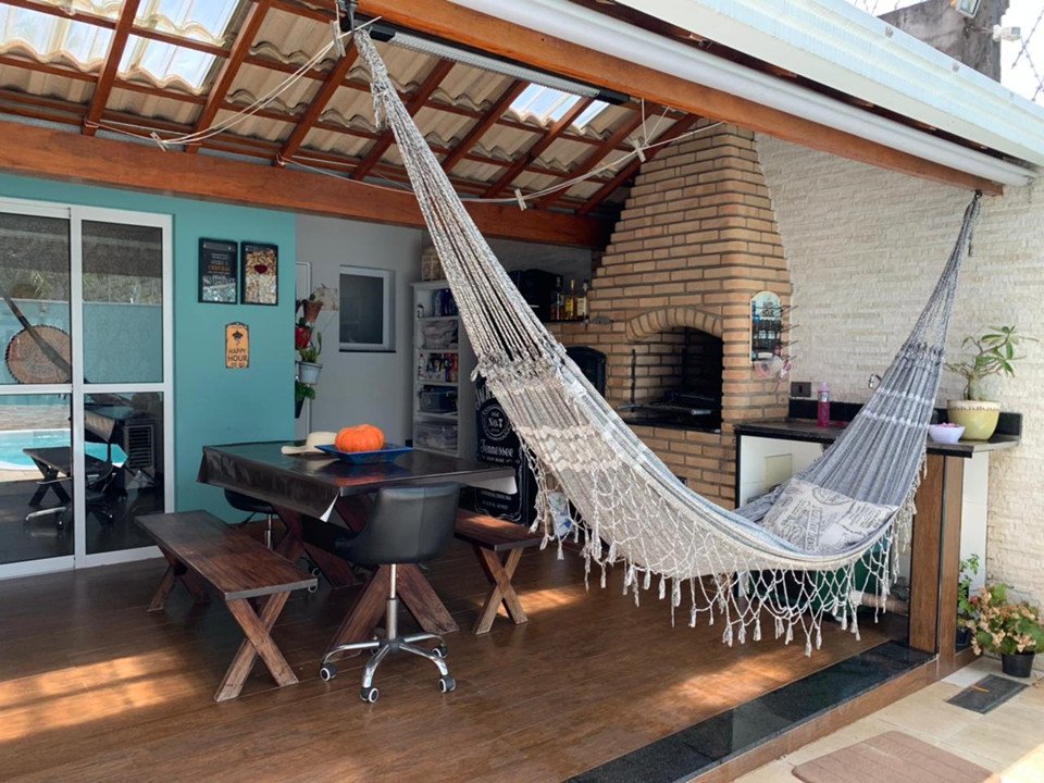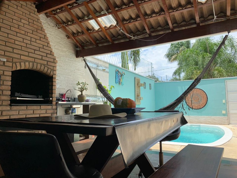 Quintal amplo com área gourmet, churrasqueira, forno de pizza e piscina com aquecimento solar