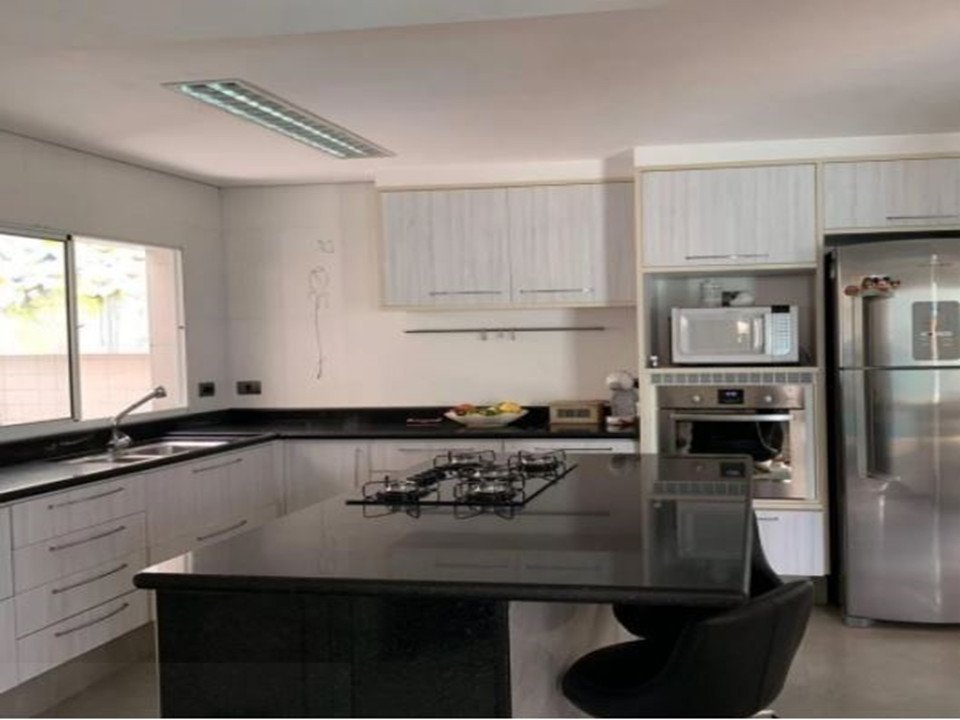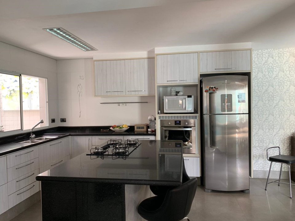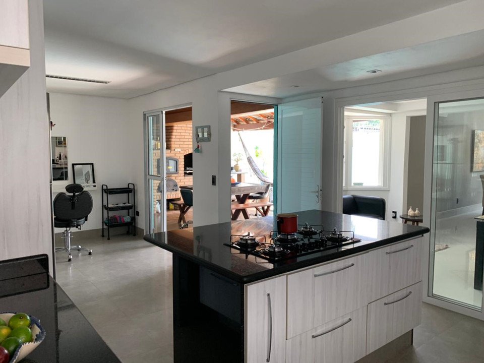 Cozinha ampla com armários planejados, ilha com cooktop e forno embutido