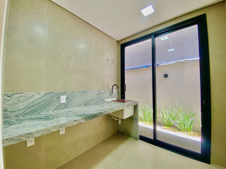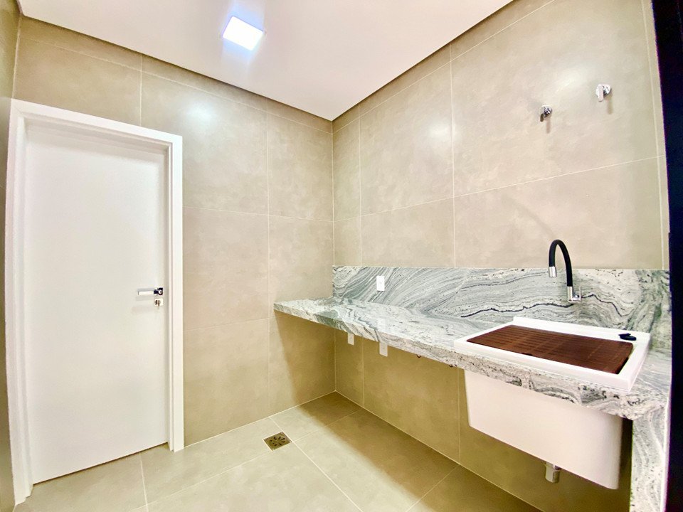Lavanderia com acesso ao jardim lateral, espaço gourmet com churrasqueira.