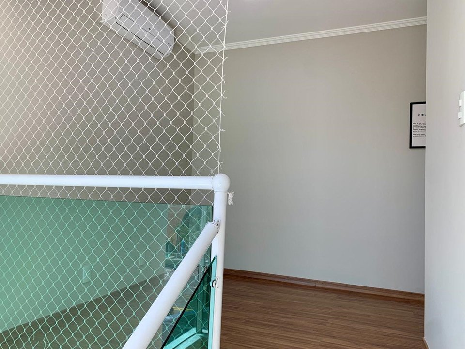Lazer e Conforto: Churrasqueira com banheiro, quintal, móveis planejados, telas de proteção.