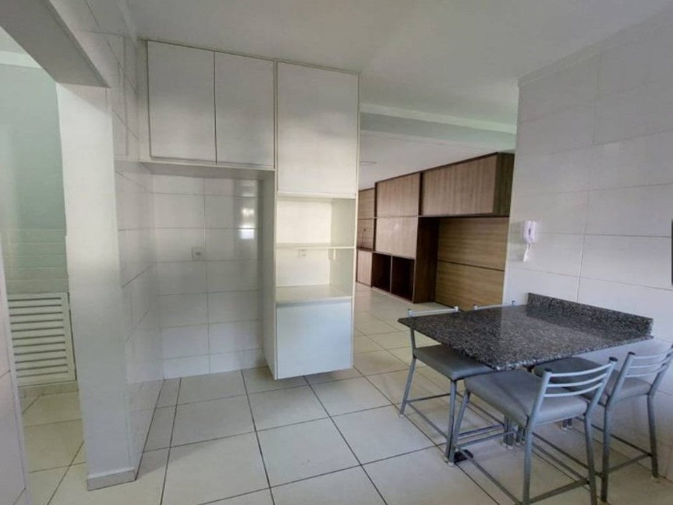 - Ambiente integrado com cozinha, sala de jantar e sala de TV.