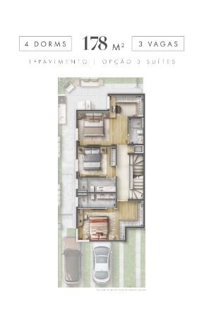 - Casas: Unidades de 145,85m² a 178,67m², com 3 a 4 dormitórios e suítes.