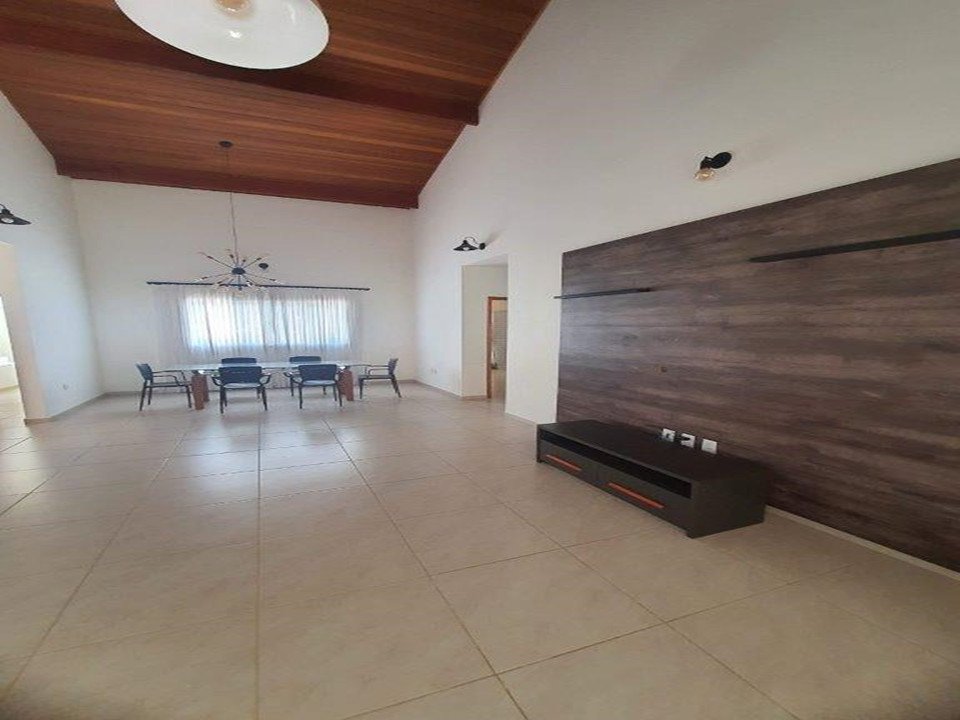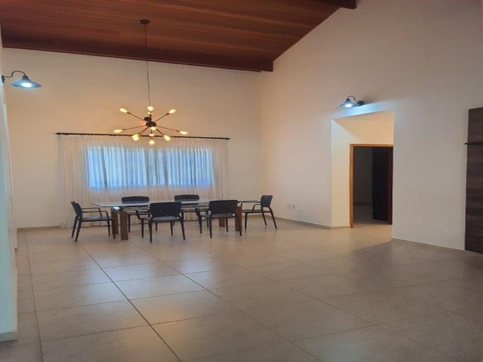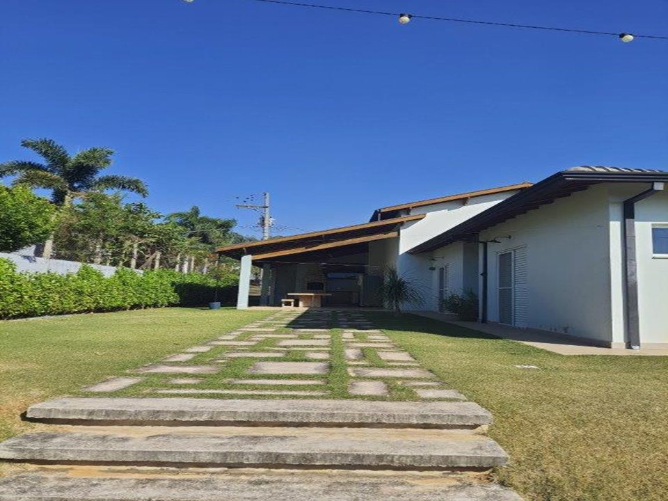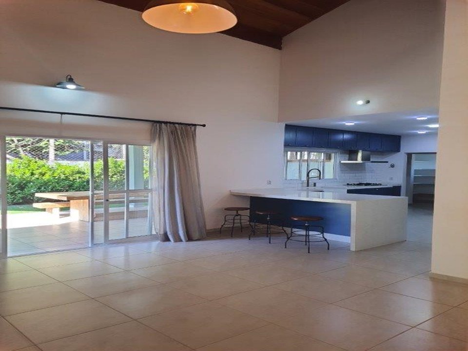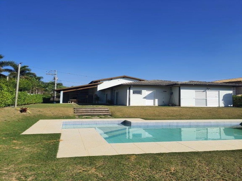 - Descrição: Belíssima casa Linear: 4 dormitórios (sendo 2 suítes), suíte do casal com vista para piscina, sala 2 ambientes com amplo pé direito de 7m, lavabo, cozinha es????lo americana com móveis planejados, cuba ????po de fazenda, torneira