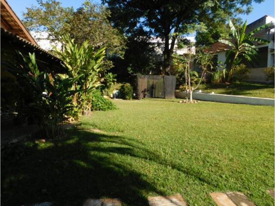 Ampla área gramada, orquidário e horta