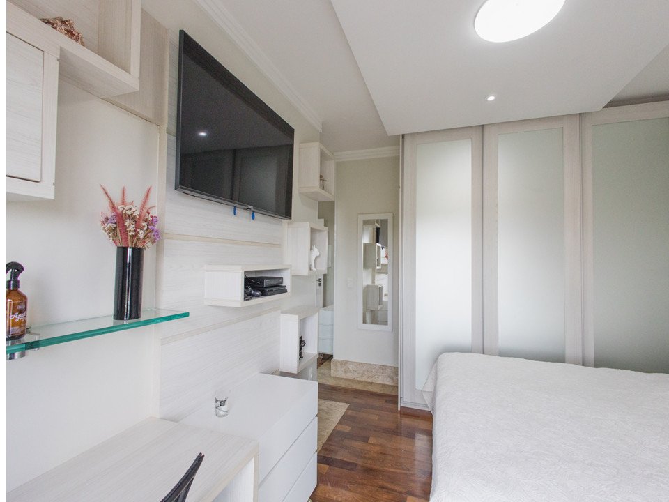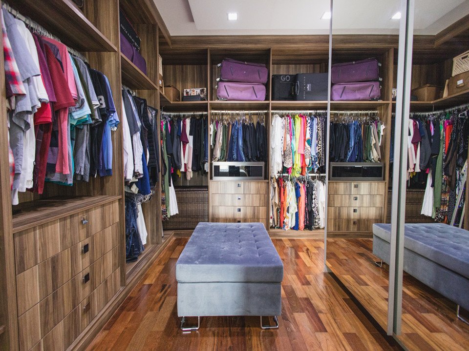 Suíte máster com generoso closet e banheiro ele/ela com banheira de hidromassagem