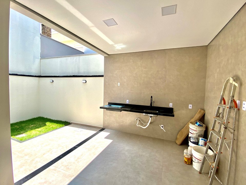 - Área gourmet, integrada com cozinha e sala de jantar através de porta balcão, totalmente coberta, com churrasqueira e pia, espaço amplo com possibilidade de uso para a construção de um ofurô.