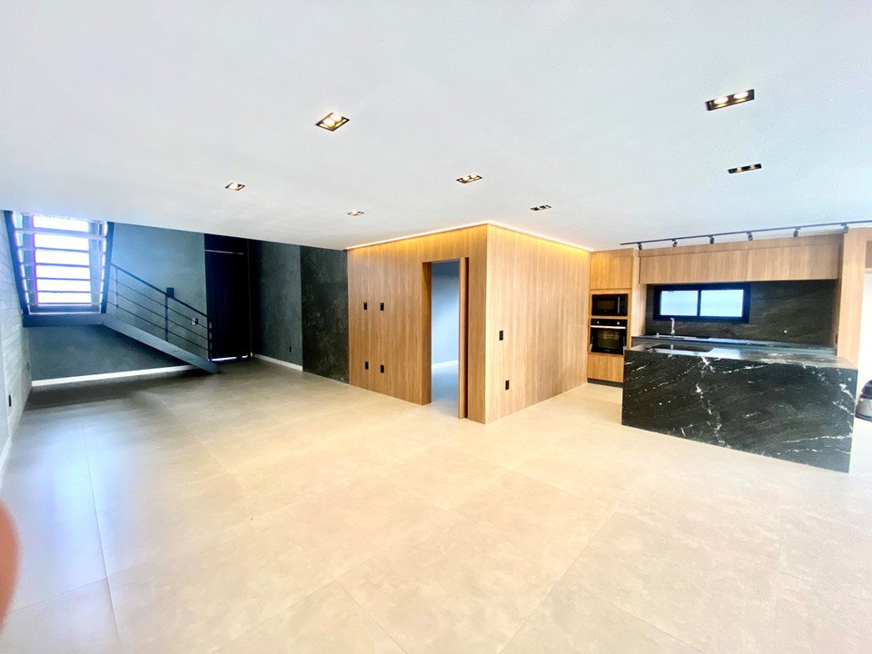 Área gourmet integrada à cozinha com armários planejados, churrasqueira elétrica Refragon, forno elétrico e micro-ondas embutidos Brastemp, ilha com cooktop de indução