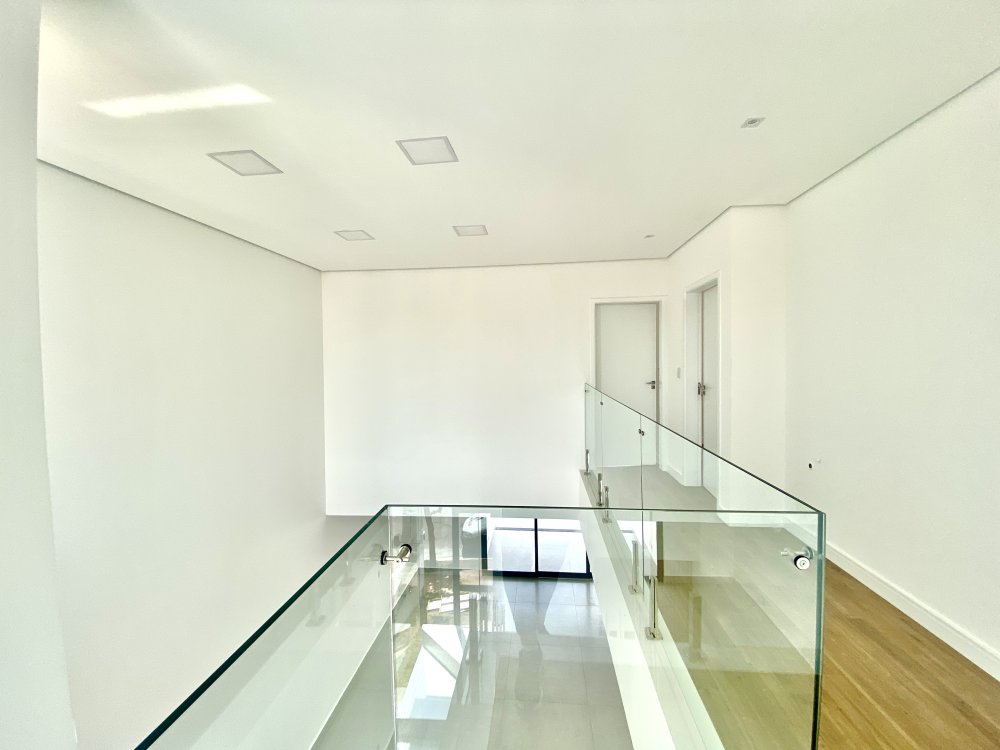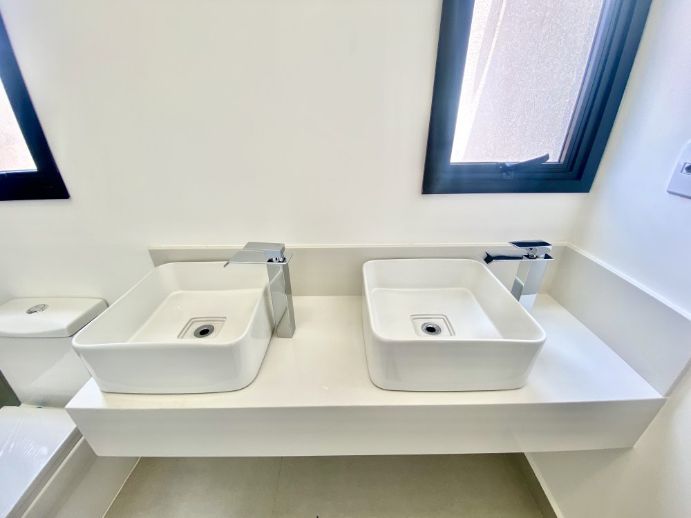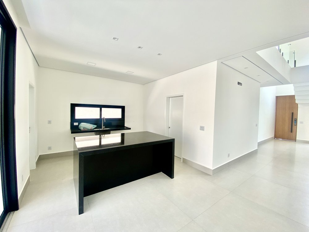 - No piso inferior temos: Amplo living, espaço para escritório ( podendo ser reversível para uma suíte ), sala de estar e jantar totalmente integradas, com ilha central e área gourmet com churrasqueira totalmente cobertas. Possui uma despensa, e lavanderia com acesso direto pelo corredor lateral.