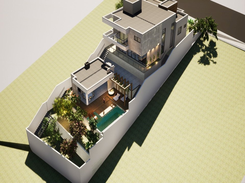 Design Inteligente: Casa dividida em 3 pavimentos devido ao terreno em declive, com espaço destinado para futura instalação de plataforma elevatória ou elevador.