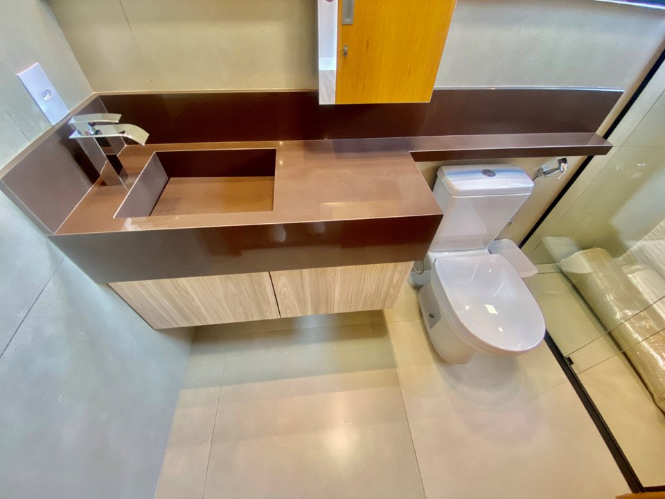 2 Lavabos: Um interno e um externo, com pias esculpidas em granito.