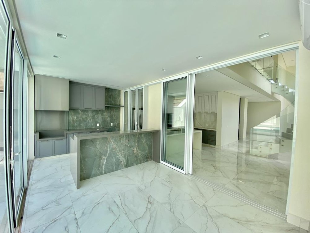 -Moveis planejados, armários, churrasqueira a gás (Concept Grill), coifa sob medida, balcão em Quartzo cinza e revestimento de alto padrão Roca. Espaço dividido para a cozinha e também fechamento para a piscina feito através de porta balcão linha Euro Slim (minimalista)