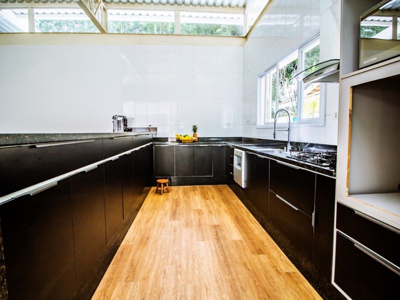 Área Gourmet: Churrasqueira, forno a lenha e fogão, ideal para momentos de lazer e confraternização.