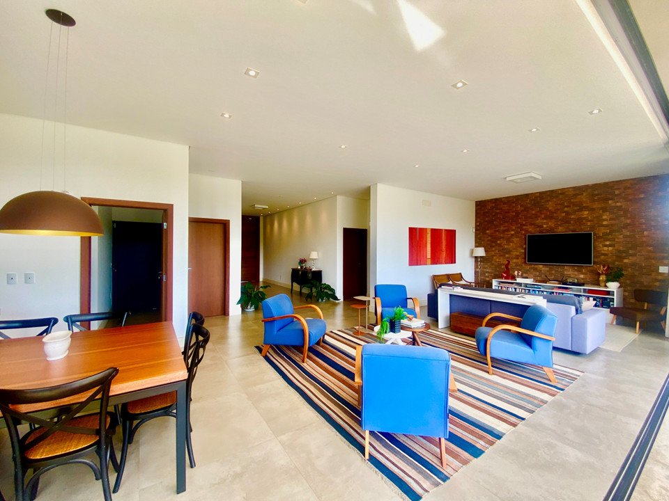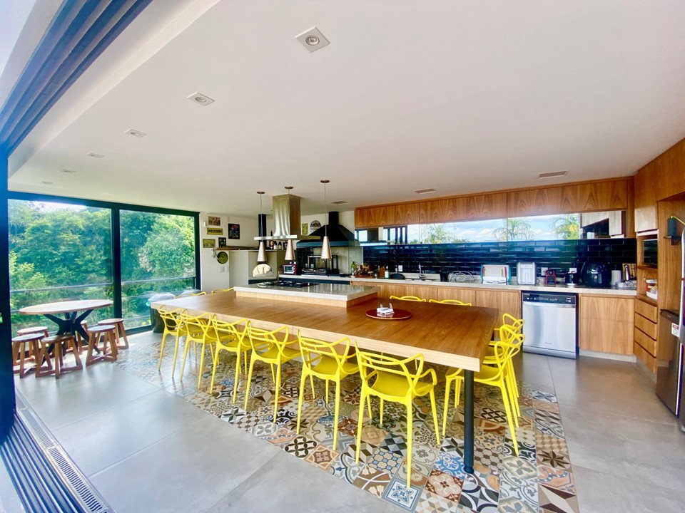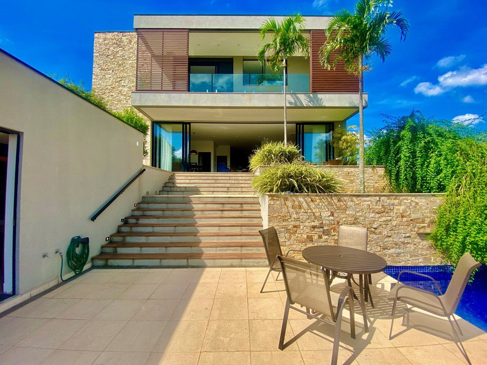 Com 5 suítes, sala íntima, copa, roupeiro, hall, lavabo, sala, cozinha, depósito, área de serviço, adega, garagem, varanda, churrasqueira, piscina e casa de máquinas.